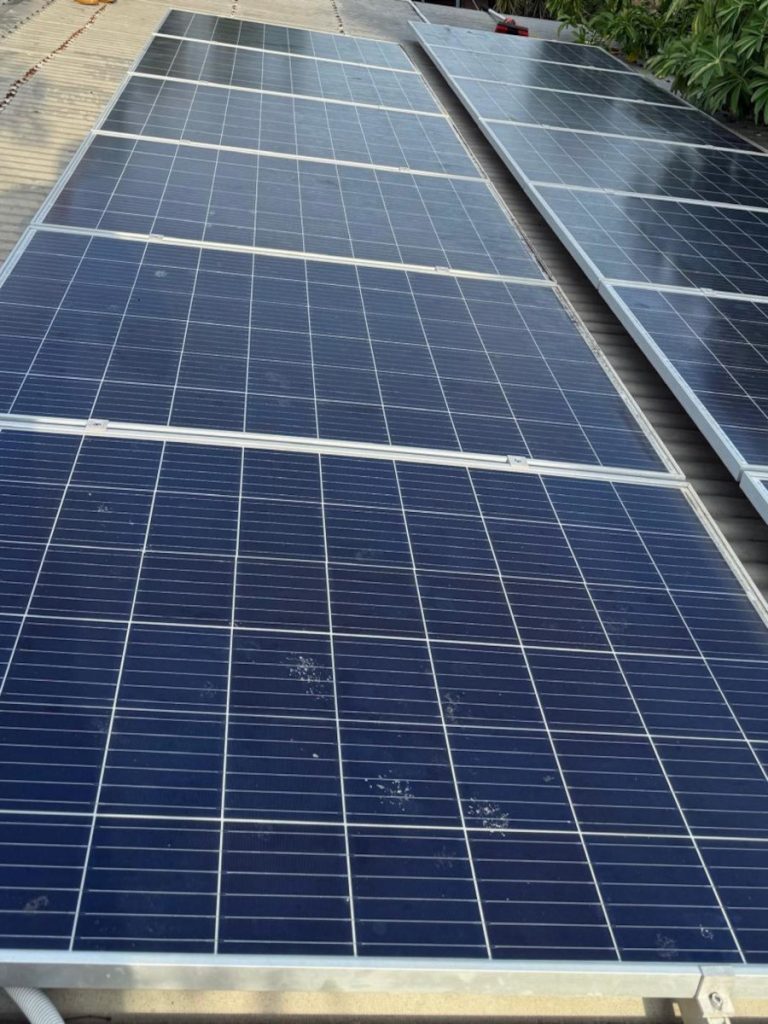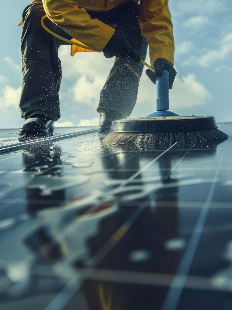 Cleaning panels after storms to remove dirt, sand, or other residues.